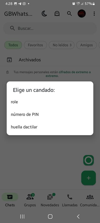 Digamos que por su seguridad usted prefiere restringir el acceso rápido de privacidad del menú de WhatsApp plus, en este caso GBWHATSAPP.